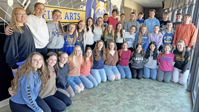 Pictured are the students who participated on at least one of MFL MarMac’s large group speech events that earned All-State recognition. Pictured are: Allie Ames, Kennedy Bachman, Brodyn Blietz, Hailey Bouzek, Anthony Bunting, Makenzie Corlette, Brooke Donlon, Ryder Dull, Madison Eilers, Emma Grau, Julia Grau, Mattie Hallberg, Lily Johnson, Cora Keehner, Avery Kugel, Layla Landt, Oliver Ludvik, Macy McGeough, Olive Meyer, Mariah Moser, Taryn Moser, Trace Moser, Parker Muras, Madison O’Connell, Jude Onken, Carsten Pester, Lauryn Sandstrom, Blake Schutte, Grace Swatek, Jonathan Whitney, Jerica Wille, Blair Winter, Kiara Young and Kinsley Young. Not pictured is Emma Driscoll. Find more photos in the Feb. 18 publication of The Outlook.